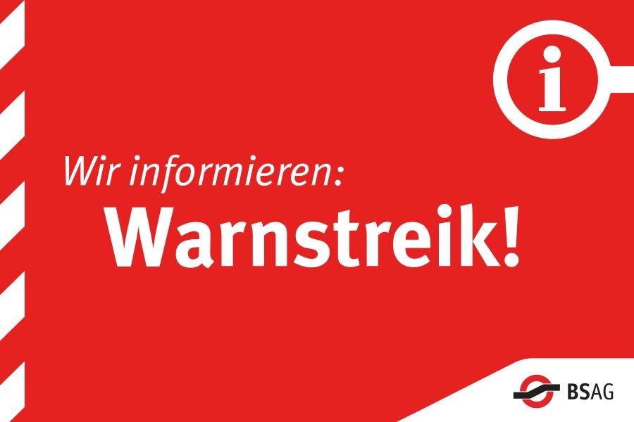Die Gewerkschaft ver.di hat ihre Mitglieder im Nahverkehr deutschlandweit zu einem Warnstreik aufgerufen. Das trifft auch uns bei der BSAG. Ab Freitag, 27. Februar, circa 3 Uhr, bis einschließlich Montagfrüh, 2. März, zum Betriebsende gegen 3 Uhr, müssen wir den Betrieb unserer Busse und Bahnen für 72-Stunden komplett einstellen, da wir unter den aktuellen Bedingungen keinen sicheren Betrieb gewährleisten können.