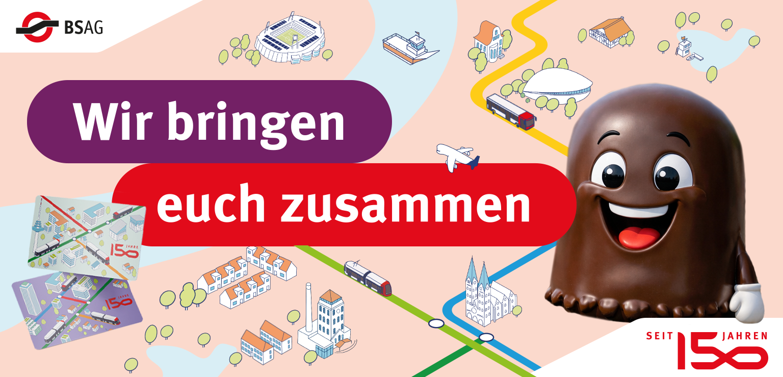 als kleines Dankeschön zum 150. BSAG-Geburtstag habt ihr heute die auftour-Jubiläumsausgabe, das Heft »Die Elektrische« sowie einen Schokokuss vorgefunden. Wenn ihr euch zusammen mit dem Schokokuss fotografiert, könnt ihr etwas gewinnen: